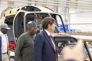 During the tour, the Honourable Minister inspected the assembly lines, observed flight test procedures, and engaged in technical briefings with senior Leonardo engineers and management. He expressed satisfaction with the pace of production and the quality of work being delivered.